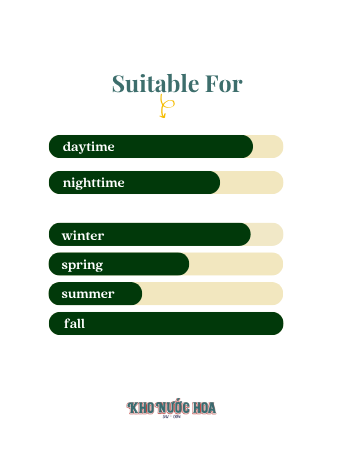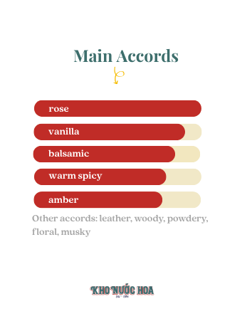 Hương đầu: Saffron, tiêu hồng, cam bergamot Hương giữa: Hoa hồng, phong lữ, hoa lan Nam Phi Hương cuối: Vanilla, hổ phách, da lộn