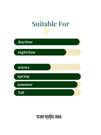 Hương đầu: Bưởi, chanh vàng, hoa oải hương Hương giữa: Gừng, táo, hoa nhài Hương cuối: Bạch dương, gỗ sồi, xạ hương, gỗ đàn hương, hoắc hương