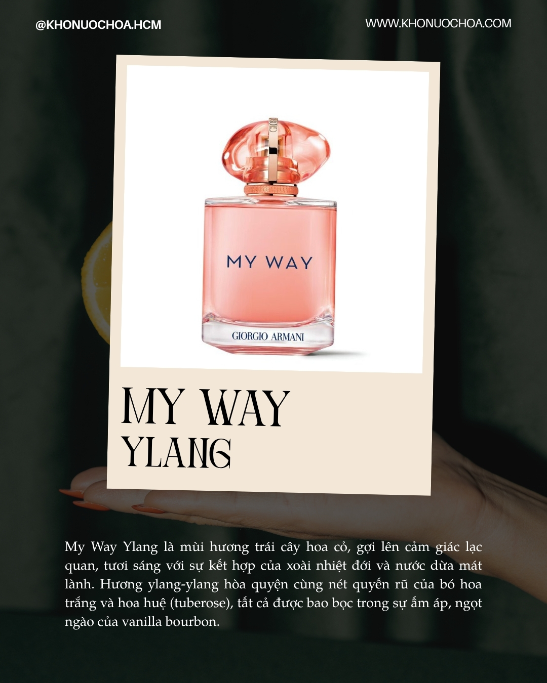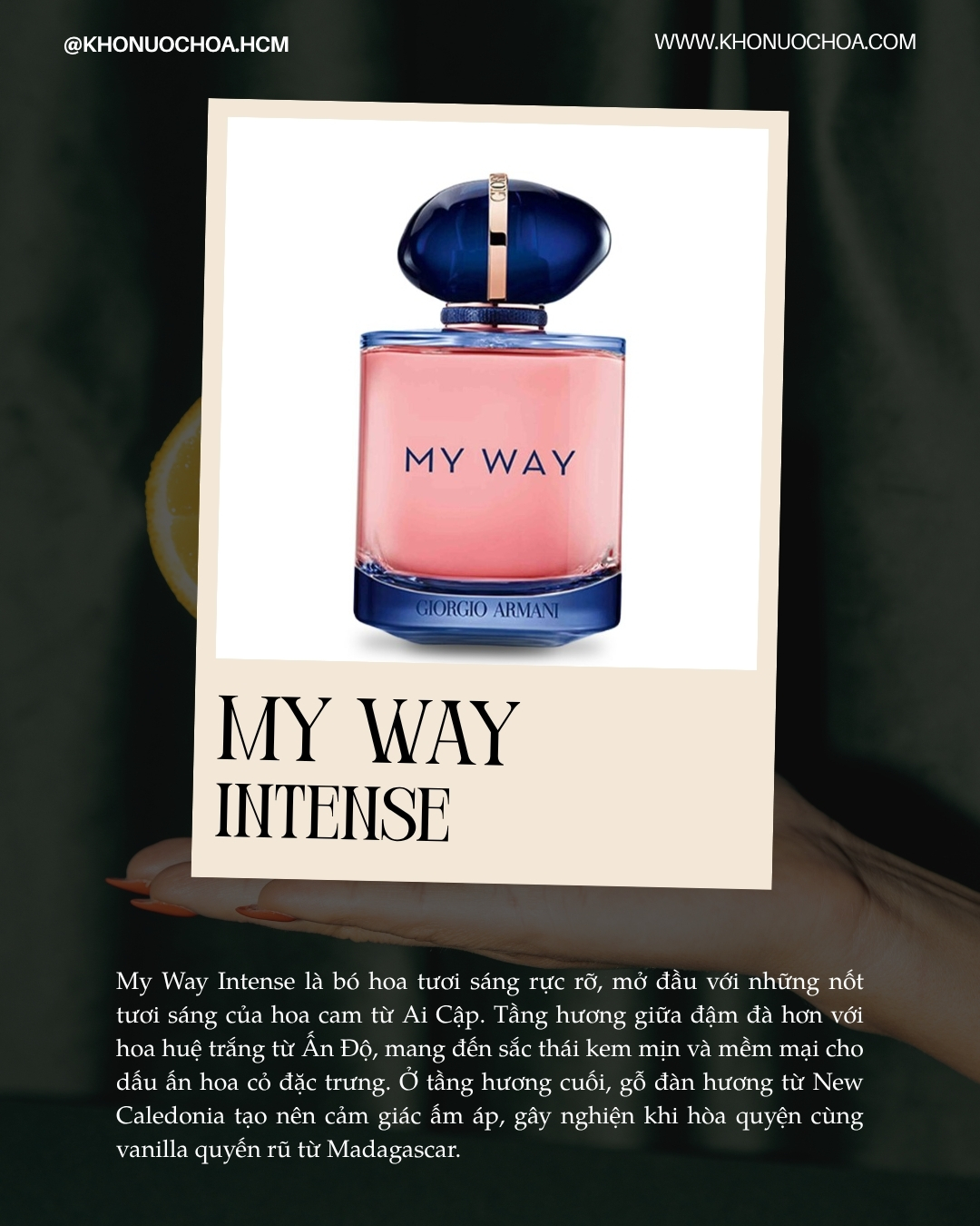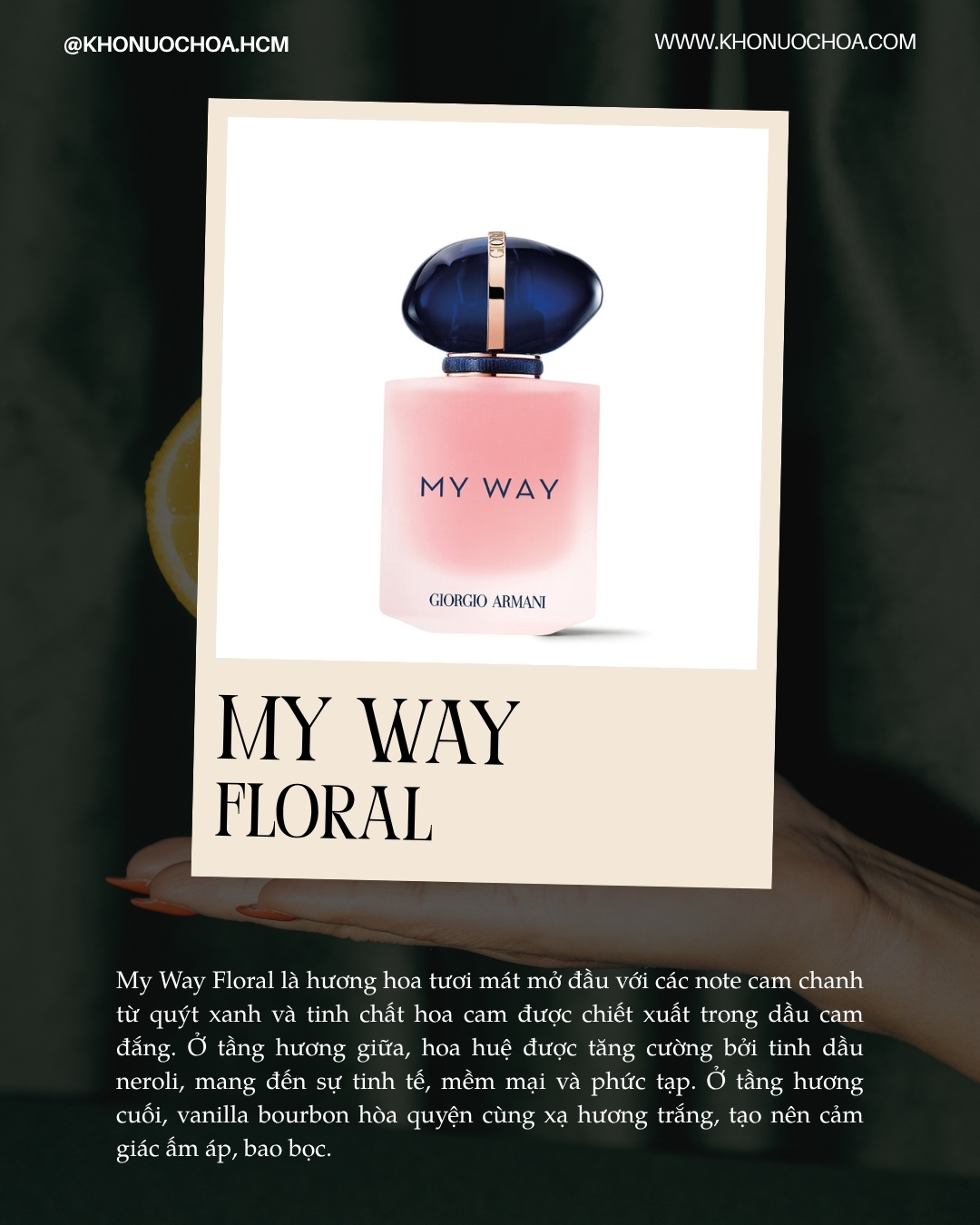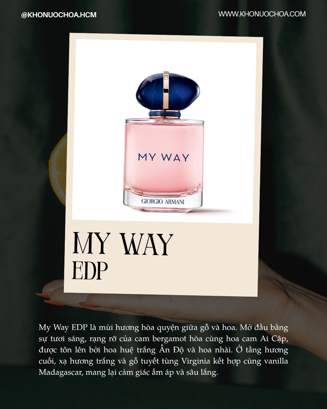 0Ra mắt lần đầu tiên từ năm 2020, My Way không chỉ là một mùi hương đơn lẻ mà là cả một dòng nước hoa xoay quanh tinh thần khám phá và kết nối. Từng phiên bản trong bộ sưu tập đều giữ chung một DNA hoa cỏ hiện đại, lấy hoa nhài và hoa huệ làm trung tâm, nhưng được biến tấu linh hoạt qua nhiều sắc thái – từ tươi sáng, thanh thoát đến sâu lắng, quyến rũ hơn.