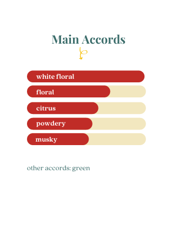 Hương giữa: Hoa loa kèn, lan Nam Phi, cây dành dành, hoa nhài, hoa trà trắng, lily, hoa hồng, mẫu đơn