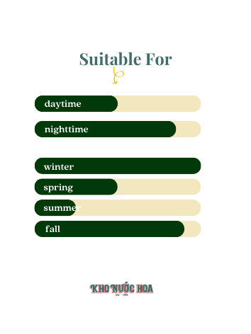 Hương đầu: Cà phê, hạt dẻ cười, knafeh, praline, hạt phỉ Hương giữa: Socola, vanilla, bạch đậu khấu Hương cuối: Caramel, hổ phách, đậu tonka