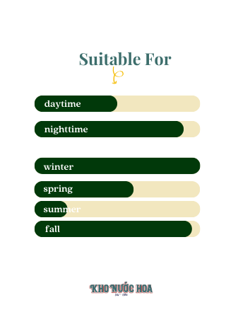 Hương đầu: Mâm xôi, quýt xanh, cam bergamot Hương giữa: Bạch đậu khấu, hoa oải hương, xô thơm Hương cuối: Da thú, wolfwood, cỏ hương bài