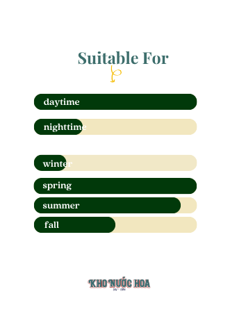 Hương đầu: Nước cam quýt, vải, mộc qua Hương giữa: Hoa súng, hoa linh lan Hương cuối: Bánh nướng, hoa diên vỹ, xạ hương trắng, hương gỗ