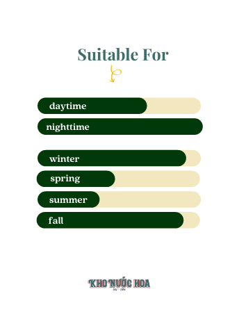 Hương đầu: Hoa hồng, cam bergamot Hương giữa: Trà đen, mộc lan Hương cuối: Trầm hương