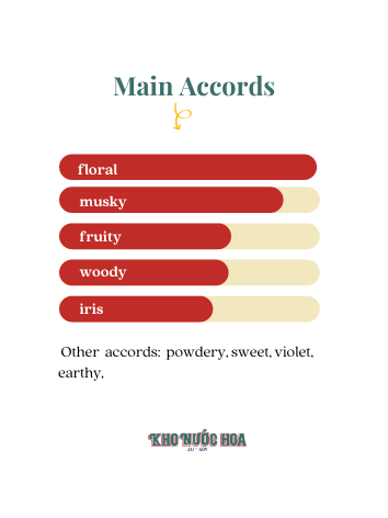 Hương chủ đạo: Musk mallow, mống mắt, trái cây, gỗ, hoa