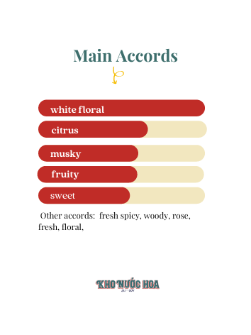 Hương đầu: Hoa cam Neroli, Cam Bergamot, Quả lê Hương giữa: Hoa lài, Hoa hồng, Quả đào Hương cuối: Xạ hương, Gỗ tuyết tùng