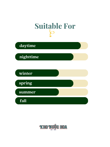 Hương đầu: một dược, quế, gừng Hương giữa: hoa cam, broom, Kyphi Hương cuối: vanilla, opoponax , Nagarmotha.