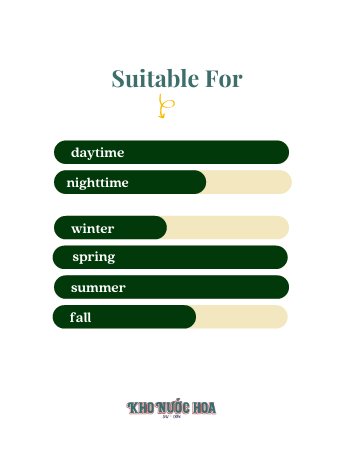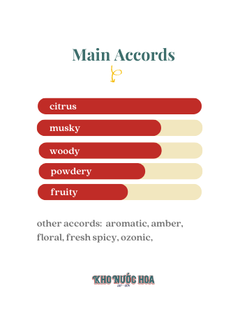 Hương cuối: Gỗ đàn hương, Gỗ tuyết tùng, Xạ hương, Ambroxan.