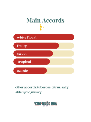 Hương giữa: Hoa huệ, Hoa nhài, Hoa cam, Hương mặt trời, Muối biển và Hương ô rô