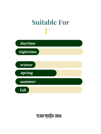 Hương cuối: Gỗ tuyết tùng, Kem, Xạ hương, Hổ phách.