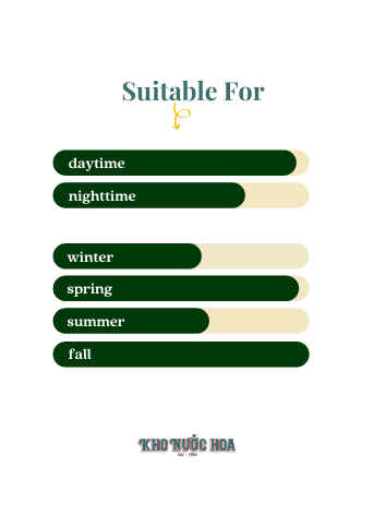 Hương đầu: Quả Bách Xù Hương giữa: Hoa Nhài Hương cuối: Bột, Gỗ Tuyết Tùng, Đậu Tonka.