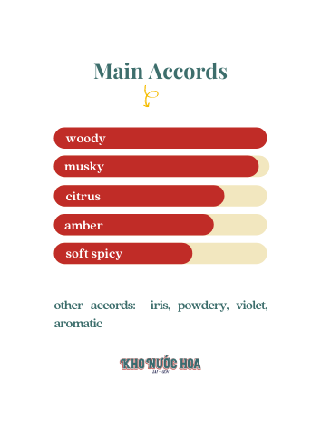 Hương chủ đạo: Iso E Super, ớt hồng, chanh amalfi, mống mắt