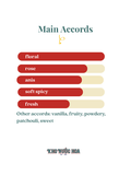 Hương đầu: Đại hồi, quả lê, táo xanh Hương giữa: Hoa hồng Liv Tyler, hoa hồng, hoa mẫu đơn, hoa mộc lan Hương cuối: Hoa hồng, vanilla, hoắc hương