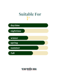 Hương cuối: Gỗ đàn hương, vanilla Tihiti, hổ phách.