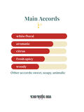 Hương đầu: Cây bách xù Hương giữa: Hoa cam Hương cuối: Ambrofix