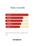 Hương đầu: Anh đào chua, hạnh nhân, quả mọng đỏ, cam bergamot Hương giữa: Cam thảo, hoa hồng, trà Hương cuối: Vanilla, cây hồi, đậu tonka, quảng hoắc hương, mống mắt