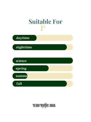 Hương cuối: Đậu tonka, benzoin, ambrette (xạ hương), hoắc hương, labdanum