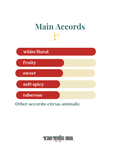 Hương đầu: Tiêu hồng, dâu tây, quýt Hương giữa: Hoa huệ, hoa huệ trắng, hoa lài Hương cuối: Heliotrope, gỗ trắng