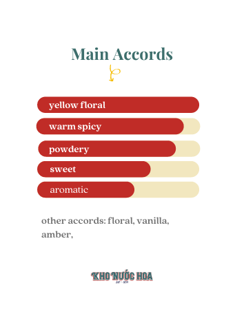 Hương đầu: Bạch Đậu Khấu Hương giữa: Hoa Mimosa Hương cuối: Đậu Tonka.
