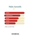 Nước hoa hòa huyện hài hòa giữa các hương cam chanh và hoa cỏ. Ngay từ ban đầu, bạn đã có thể cảm nhận được hương hoa cam quấn quýt cùng với hương hoa tử đinh hương và một ít cây xả, đại diện cho hương cây cỏ xanh. Hương hoa cam nồng nàn và sống động như vườn cam. Mùi hương của cam clementine kéo dài đến lớp hương giữa đậm chất hoa cỏ, bao gồm hoa cam, và hoa súng. Lớp hương cuối khi nước hoa gần bay hơi hết chỉ để lại hương hoa cam hòa huyện cùng với tử đinh hương..