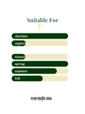 Tươi mát với một chút hương bưởi, kết hợp với nốt hương đầy lôi cuốn của bạch dương bạc và gỗ sồi rang.