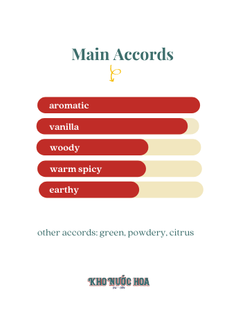Hương chủ đạo: Vanilla, cỏ hương bài, thảo quả, trà, bưởi.