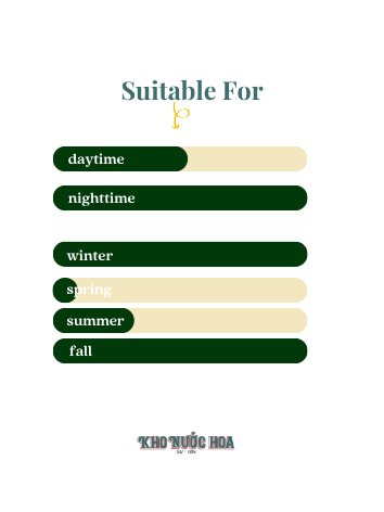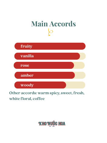 Hương đầu: Trái cây màu đỏ, mận Hương giữa: Hoa hồng, hoa linh lan, cà phê Hương cuối: Vanilla, hoắc hương, benzoin, cây tuyết tùng, hổ phách