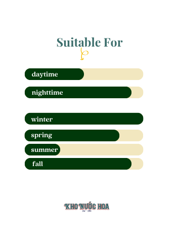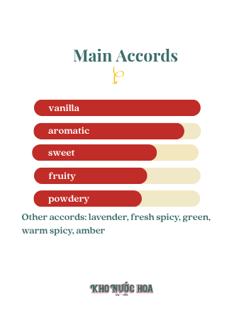 Hương đầu: Quả lê, hoa oải hương, bạc hà, cam bergamot Hương giữa: Bạch đậu khấu, cây xô thơm Hương cuối: Vanilla, hổ phách, xạ hương, hoắc hương