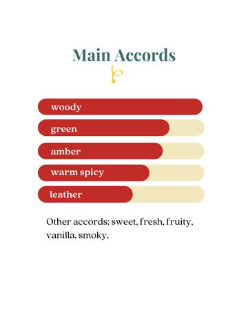 Hương giữa: Lá sung, da thú, gỗ đàn hương, tuyết tùng, xạ hương, hoa oải hương