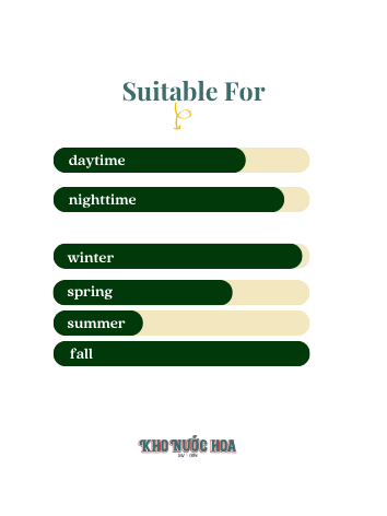 Hương đầu: Xạ hương Hương giữa: Nghệ tây Hương cuối: Ambroxan, nhang