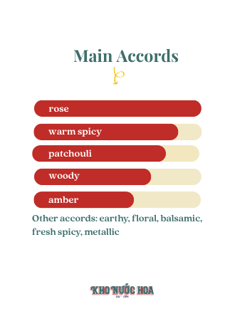 Hương chủ đạo: Hoa hồng, hoắc hương, nghệ tây, labdanum, tiêu