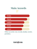 Hương đầu: Mâm xôi, quả mơ Hương giữa: Hoa mẫu đơn, lá violet, hoa nhài Hương cuối: Ambroxan, rêu, gỗ đàn hương, vanilla
