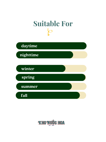 Hương giữa: Dâu rừng, mận, hoa hồng, hoa nhài, tuyết tùng