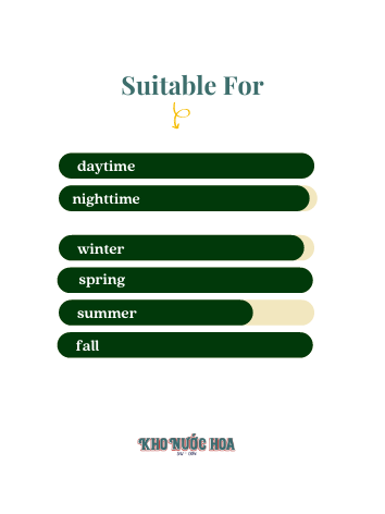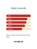 Hương đầu: Cam Bergamot, Quả Lê, Quả Vải Hương giữa: Hoa hồng Thổ Nhĩ Kỳ, Hương Nhang, Trầm hương Hương cuối: Vanilla, Hổ phách, Hương gỗ