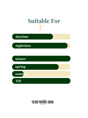 Hương đầu: Hoa Diên Vĩ Hương giữa: Quảng Hoắc Hương, Hổ Phách Hương cuối: Da Thuộc, Đậu Tonka, Gỗ Đàn Hương.