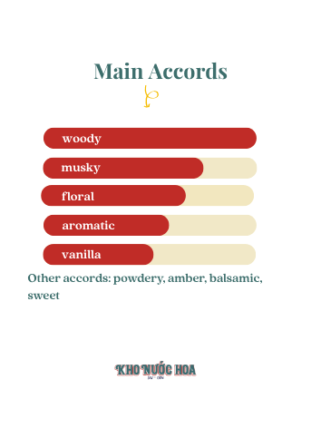 Hương chủ đạo: Coumarin, ambrette (xạ hương), Iso E-Super, cây tuyết tùng, hedione, rễ hoa diên vỹ, gỗ đàn hương, hoa lan Nam Phi