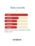 Hương cuối: Hổ phách, da thuộc, vanilla, hương trầm, cầy hương, nhựa thơm Tolu, rễ cây diên vĩ, labdanum, hoắc hương, gỗ trầm hương