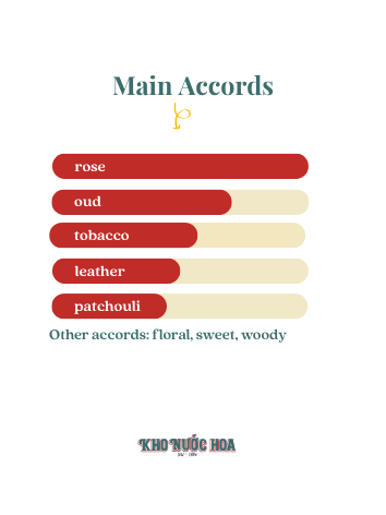 Hương chủ đạo: Hoa hồng, gỗ trầm hương, thuốc lá, da thuộc, hoắc hương