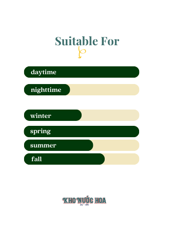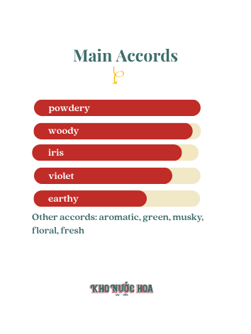 Hương đầu: Galbanum, cam bergamot Hương giữa: Hoa diên vĩ, hoa cam neroli Hương cuối: Hoa hồng, hoa violet, xạ hương trắng, Iso E- Super, gỗ tuyết tùng, gỗ đàn hương
