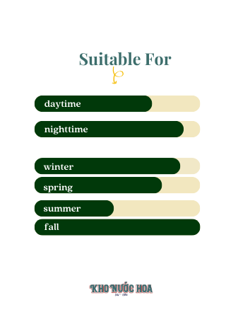Ở lớp cuối, mùi hương phát triển một chiều sâu ấm áp qua sự kết hợp của gỗ cashmere, nhũ hương và hổ phách. Vanilla mặn ngọt làm dịu đi sức mạnh của hương gỗ, tạo nên một dấu ấn lâu dài, quyến rũ và sang trọng. Sự pha trộn này không chỉ nhấn mạnh sự mạnh mẽ mà còn phản ánh cá tính độc đáo của người sử dụng, đặc biệt thích hợp cho những buổi tối hay thời tiết mát mẻ. ![]()