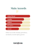 Hương cuối: vanilla, benzoin, xạ hương.