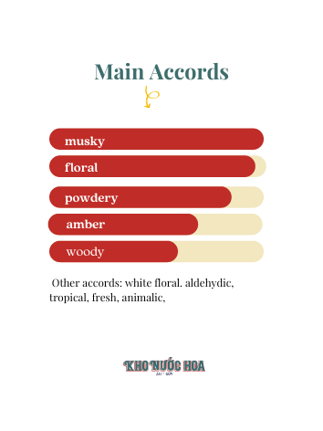 Hương đầu: Aldehydes Hương giữa: Frangipani, Hoa nhài Sambac và hoa diên vĩ Hương cuối: Cashmeran, Long diên hương và Xạ hương.