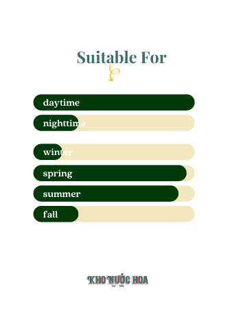 Hương đầu: Quả Yuzu, Lựu, Hương nước Hương giữa: Hoa sen, Hoa mẫu đơn, Mâm xôi, Hoa Mộc lan Hương cuối: Hổ phách, Xạ hương, Gỗ gụ