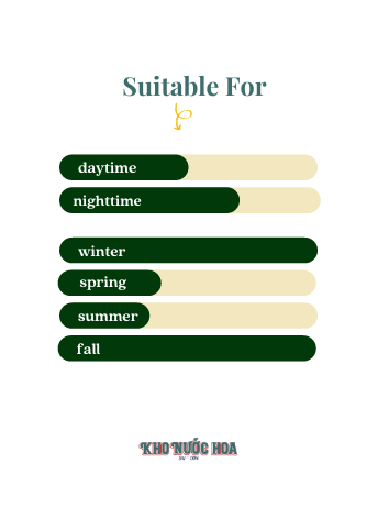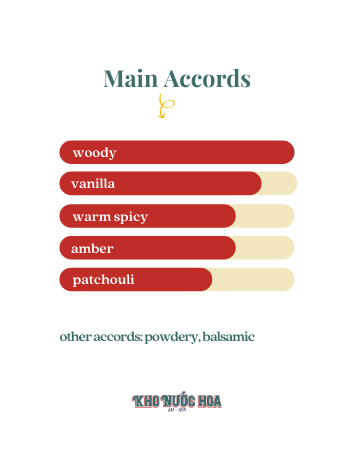 Hương chủ đạo: Vanilla, gỗ, hổ phách, gia vị, hoắc hương